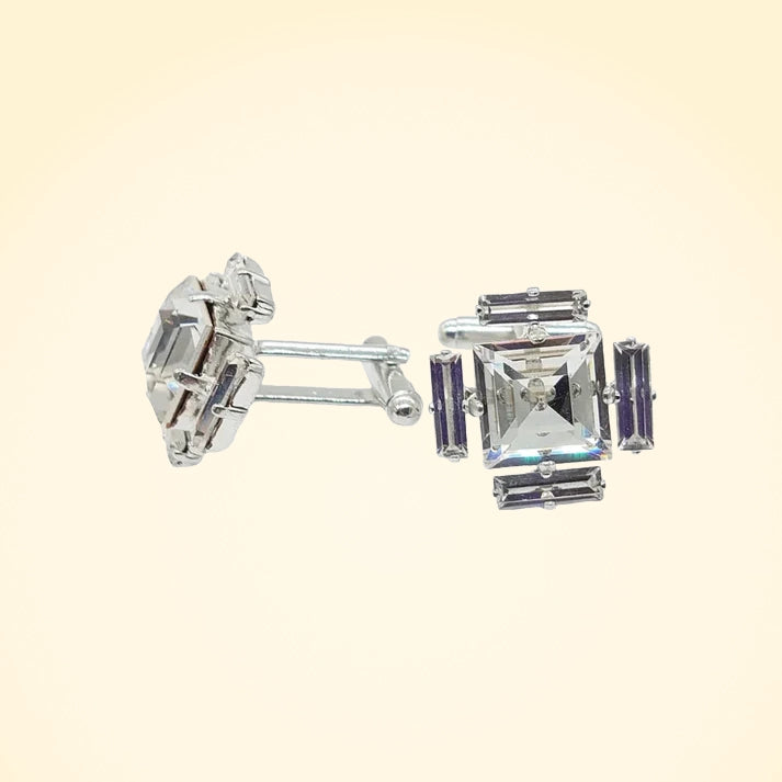 Swarovski Crystals Baguette Surround Square Cufflinks
